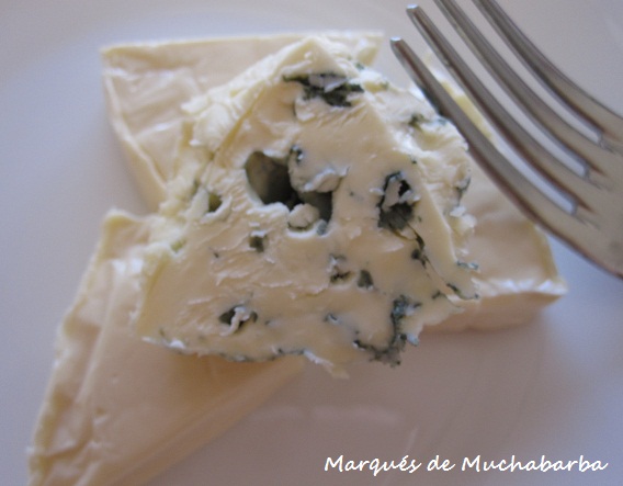 Preparamos el relleno, como el roquefort es bastante fuerte, lo he mezclado con quesitos para suavizarlo. Yo he puesto mitad y mitad, cada uno puede variar las proporciones según le guste más o menos fuerte.